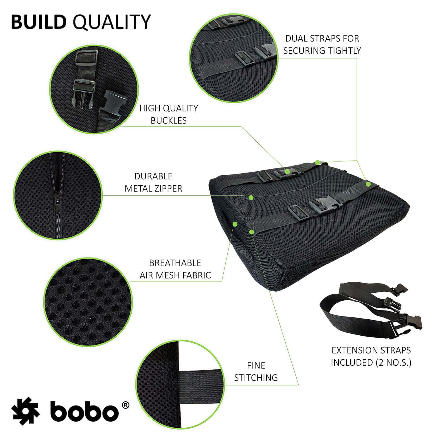 This support pillow makes driving and flying tolerable, and the straps and clips seem stout enough to survive a few years. I like that the cover is removable and washable.