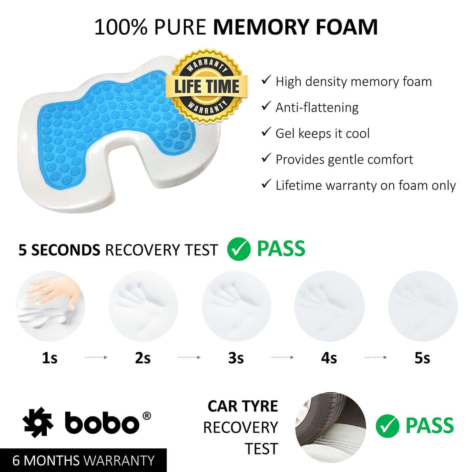 I received the product on time and in plastic. Its very comfortable and cool to tg he touch. It easily carried and it also retains its shape, even after sitting on it for up to 8 hours. I’m glad I found this cushion.